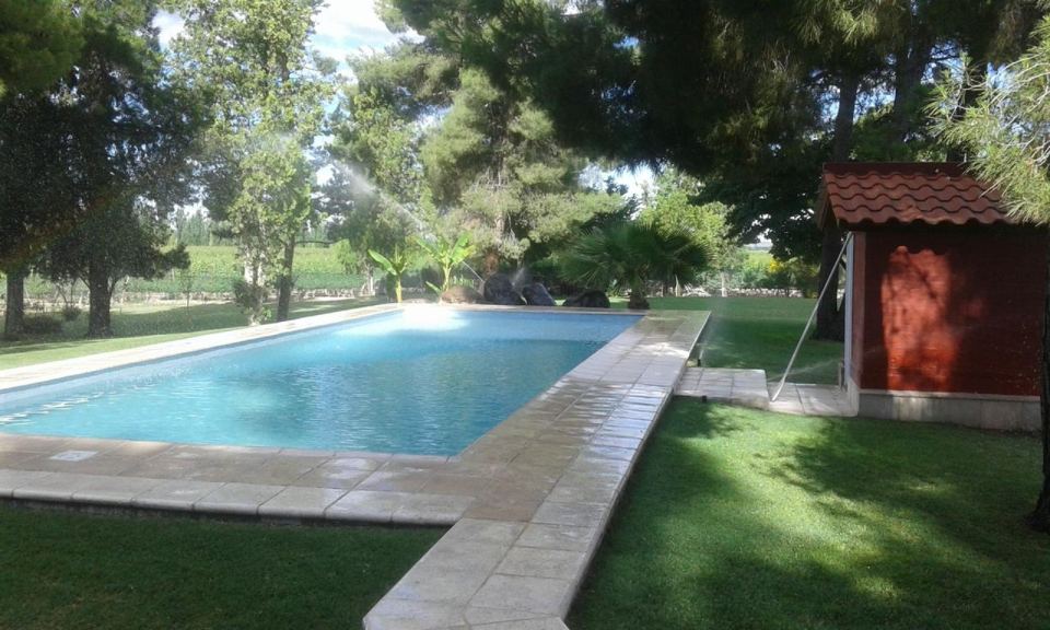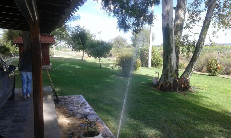 Riego por aspersión en el parquizado y por goteo en el resto de la finca